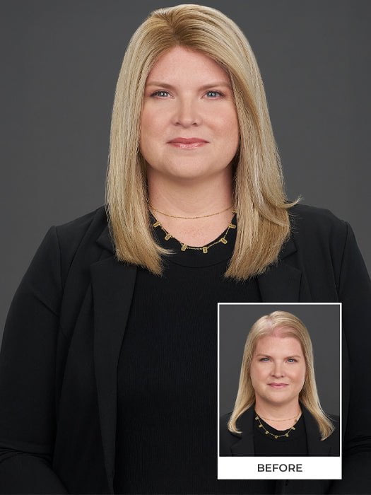 Top Form Lace HH 18 by Jon Renau adds amazing coverage and beautiful length to your hair. This long hair topper features 18 of 100% Remy human hair for a soft. luxurious look and feel. The temple-to-temple Smart Lace front for a natural hairline creates a natural hairline. This hair topper is lightweight at the front and gradually transitions to medium coverage at the crown and back. Great for mid-progressive hair loss.