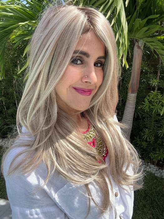 The Angelica Partial Monofilament Wig by Noriko is a beautiful. long look. The lengthy textured layers fall to mid-back providing life-like movement. The layers give a full and flowing look.