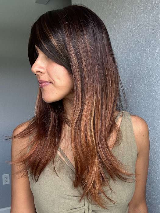 The Camilla Wig by Jon Renau has elegant side swept bangs and cascading long layers. Exude the chic allure! The hand tied double mono top allows for versatile styling in any direction — let your imagination reign.