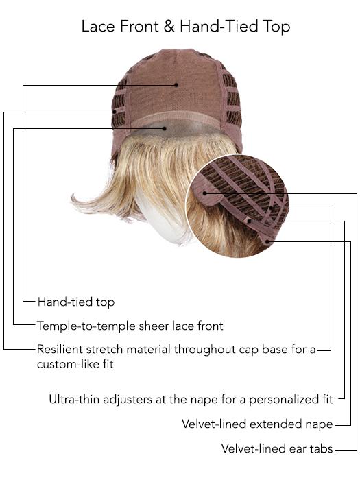 - 100% Hand-Tied Top – Each hair is individually hand-knotted to the base. allowing for supremely natural movement. The cap is comfortable and soft – ideal for sensitive scalps.