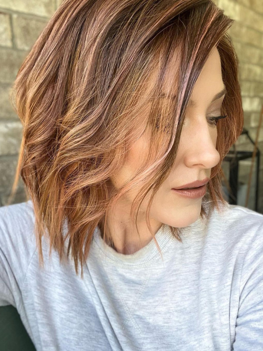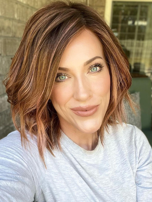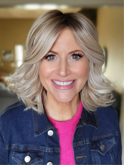 Delight from Ellen Wille’s Changes Collection is a glamorous mid-length bob style with relaxed beach waves and a lightweight fringe. beautifully framing your face. Made with heat-friendly synthetic fiber. you have endless styling possibilities. The lace front creates a natural front hairline. transitioning into the mono part area for a natural hair growth appearance in the parting area.