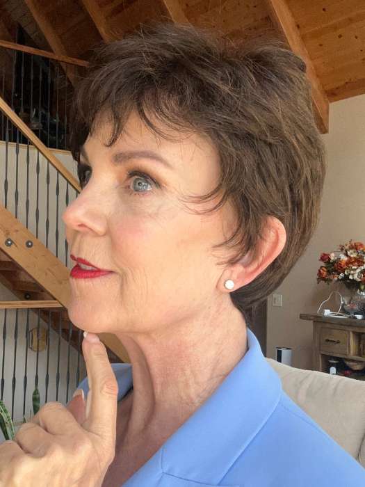 Estate by Ellen Wille is a short synthetic wig from the Hair Power Collection. This cute pixie has wispy bangs you can style to the side. The full monofilament top allows you to part the hair in any direction. The extended lace gives a seamless hairline. Estate fits true to a Petite/Average cap size.