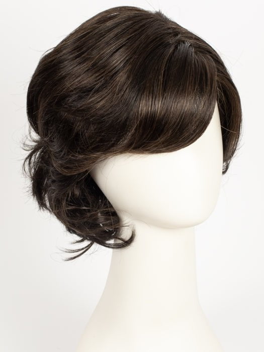 The ready-to-wear lace front is 1 ½ deep and creates a natural-looking hairline that allows you to style the hair off of the face. The monofilament part is located on the left and can be adjusted in the pre-selected hand tied area. It is sheer to blend in with all skin tones making it a must have feature. With lots of texture and layers. this unique cut is flattering and on trend.
