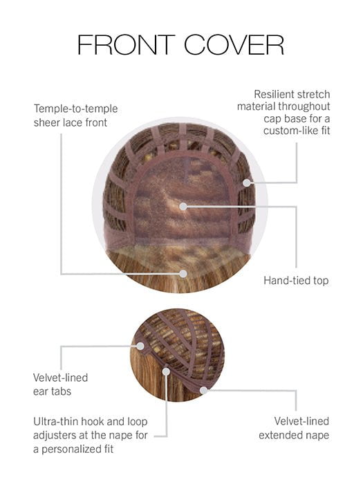 Front Cover by Gabor is from the Designer Series. This long bob wig has subtle layers and made with Tru2Life heat friendly synthetic fiber for endless styling potential. The hand tied monofilament top gives you the freedom to part the hair in any direction. The cap has an extended lace front. velvet ear tabs. and velvet nape.
