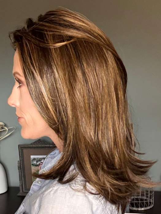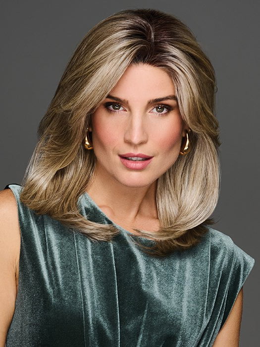 Full Finesse by Gabor presents a lovely length with long. tapered layers and curtain bangs that beautifully frame the face. Part of the Designer Series. the Tru2Life heat friendly synthetic fiber offers endless styling potential! The wide center monofilament part mimics natural hair growth for a realistic appearance. The extended lace front creates a realistic hairline for off-the-face hairstyling.