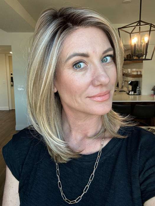 Genova by Belle Tress is part of their City Collection. The sleek. heat friendly synthetic hair has subtle layers that beautifully frame the face for a flattering hairstyle. This shoulder-length wig has a monofilament part and extended lace front for a realistic appearance.