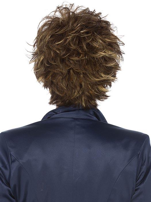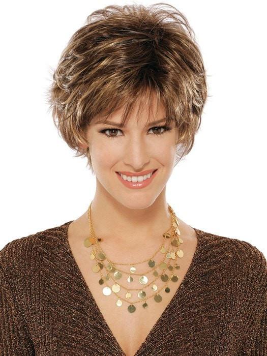 Heidi by Estetica Designs Wigs is a short layered pixie cut with a slight flip back and layers with bang. Heidi has an open-stretch (capless) cap construction.
