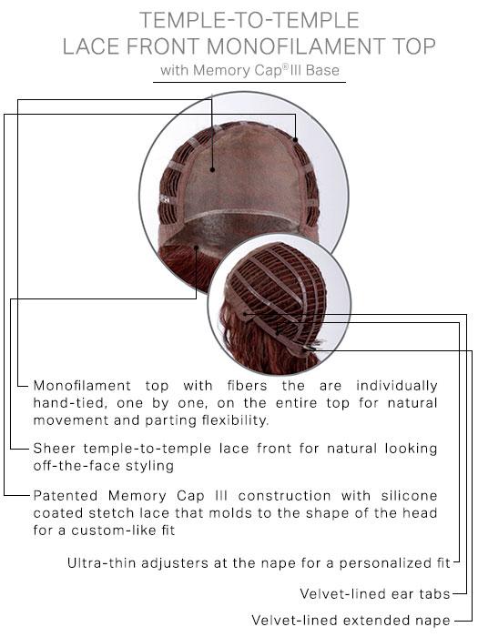 • Memory Cap® III – Constructed with resilient stretch lace coated with flexible silicone along the back and sides for a superbly comfortable and secure fit that maintains its shape over time and molds to the head.