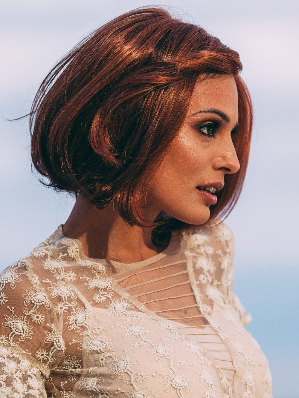 High Society by is a precision crafted. that includes sides that gently graduate up to a collar length nape including a for varied parting options and a sheer lace front for a life-like. off-the-face styling.
