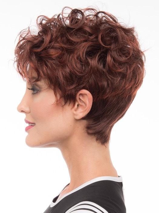 Kaitlyn by Envy is a short. trendy. and curly synthetic wig. You can shake it and wear it tousled or tightly curled. The layered side bang can be cut or trimmed by your stylist. The layered curl provides full coverage along the hairline. You can enhance the curl and texture by shaping and re-curling with your fingers.