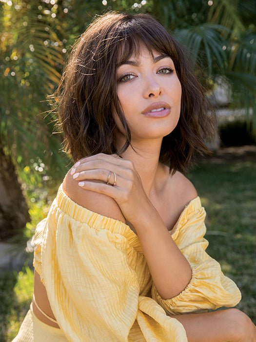 Liana by Rene of Paris is a mid-length synthetic wig. This ready-to-wear wig is a stunning bob with bangs and soft shattered waves. Liana is an effortless and versatile wig that is salon-inspired with a sleek full fringe. Liana is part of the Orchid Collection.