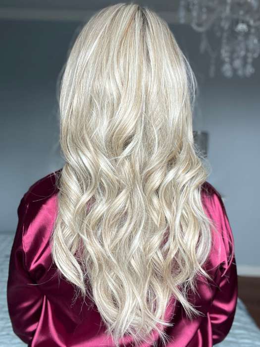 Long Tousled Waves by Hairdo features an ethereal wavy hairstyle that will make it appear as if you stepped right off the beach. The long synthetic hair is heat friendly and has strategic layering for added volume and natural movement. The extended lace front and monofilament part mimic the look of hair growth.