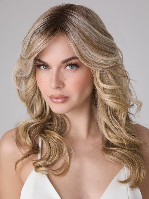 Medium Wavy TP Mono by Amore is a mid-length hair topper with beautiful waves that add the perfect amount of texture. The tapered fringe can be styled in multiple ways from trendy curtain bangs to stunning side-swept bangs. The monofilament top gives you the option to change the part. The lightweight monofilament base has soft netting for a comfortable fit and natural appearance. The lace front gives the illusion of hair growth for a natural hairline.
