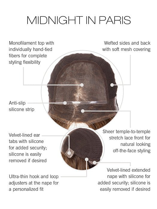The Soft Secure Cap features a monofilament top that extends to the crown. The breathable mesh lining feels silky smooth against the skin for lasting comfort. The extended lace front gives a flawless and realistic hairline. The side and back of the cap are wefted to allow air to flow directly to the scalp. The anti-slip silicone strip helps keep your wig securely in place.