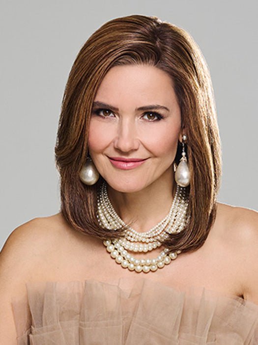 Midnight in Paris by Raquel Welch is part of the Black Label Collection. The mid-length human hair wig can be worn piecey or heat styled with curls for added flair. The long layers around the face and throughout the wig creates lifelike movement and volume.