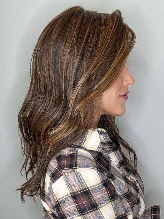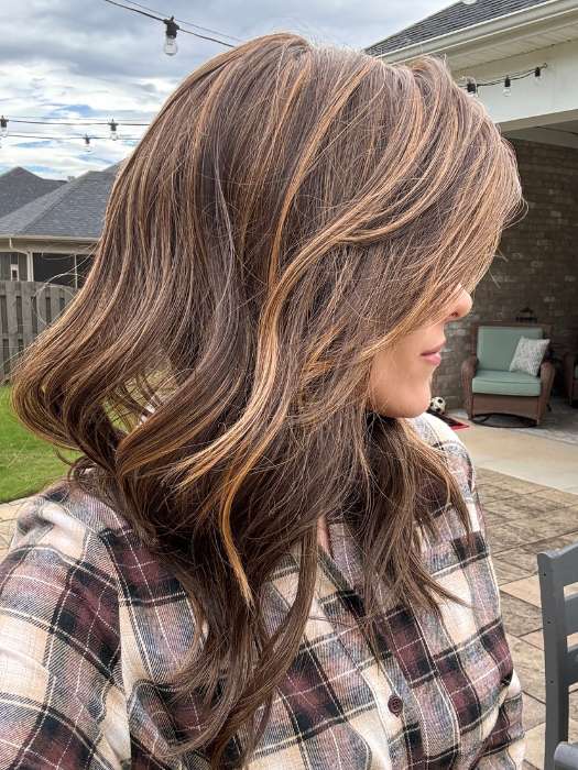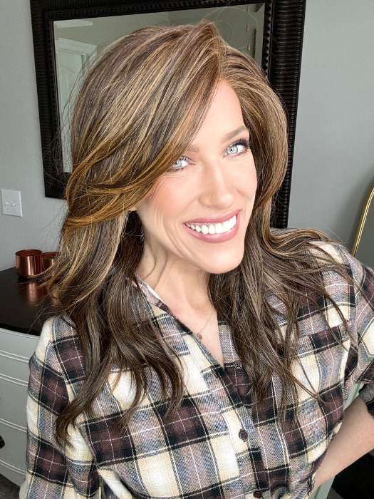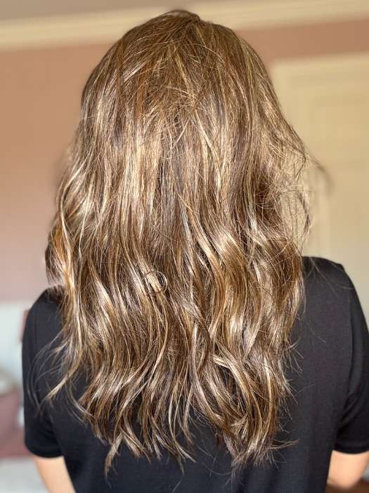 Milano by Belle Tress is a beautiful long wig from their City Collection. The heat friendly synthetic hair and the extended lace front offer versatile styling options. The wavy texture and face-framing layers create a flattering hairstyle. The monofilament part creates a realistic look.