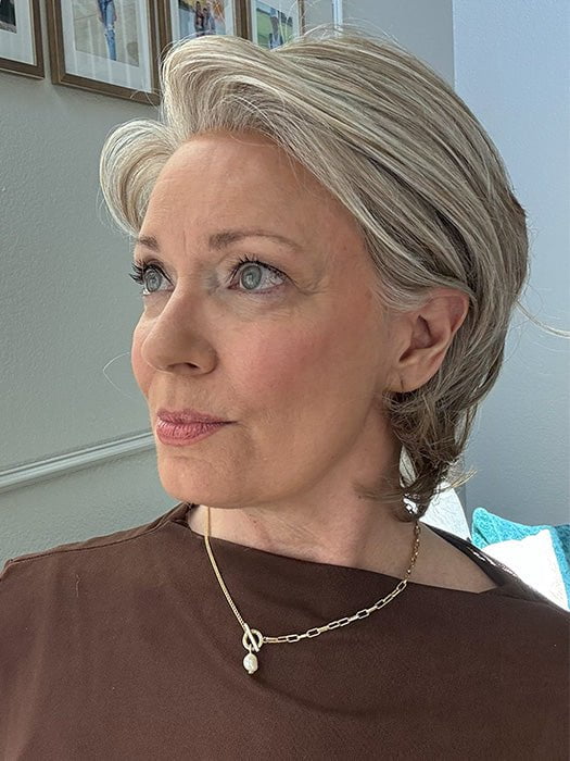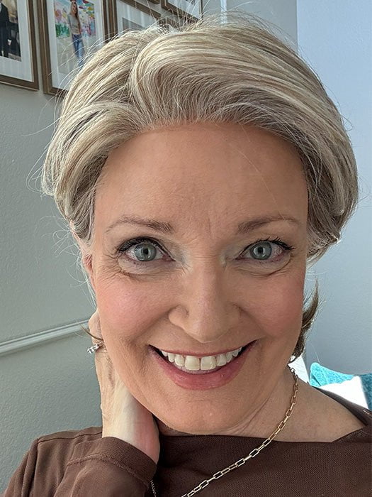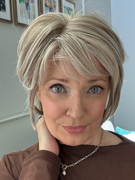 Naomi by Jon Renau is layered and lovely. Flirt with the endless layered styles of this chin length shag. With a lace front. monofilament top and heat friendly HD fiber. you can achieve any look. Comb it up for more height or comb it down for less volume. Naomi is very versatile! Watch Jon Renau Naomi video review for more details.