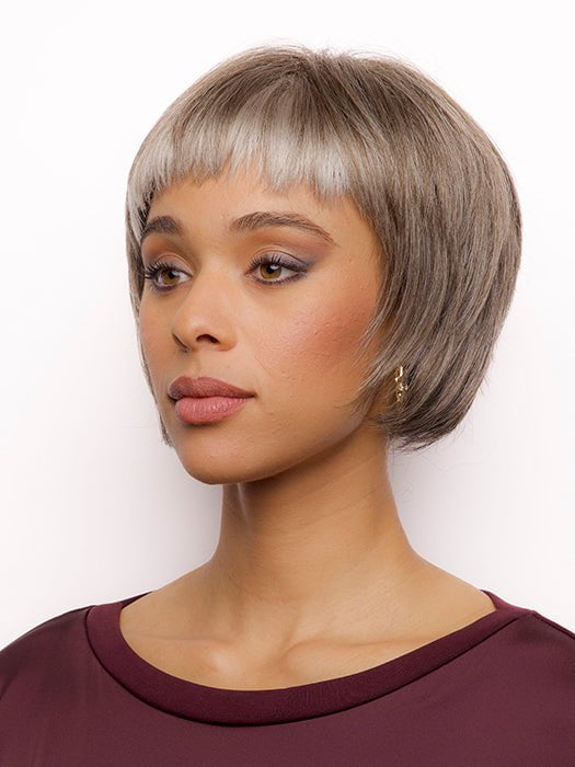 Nell from the Rene of Paris Hi-Fashion Collection is a short length synthetic wig that is ready-to-wear – right out of the box! This style is a sleek. sophisticated bob with full bangs to flatter your eyes and frame the face perfectly. accentuating your best facial features! The cap is machine made with adjustable tabs in the nape area to allow for maximum comfort.