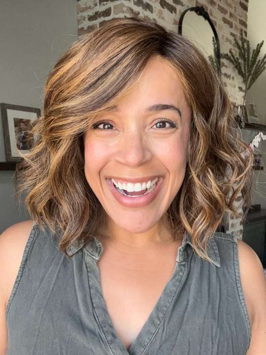 Nyx by Rene of Paris is a Bohemian-inspired hairstyle with beachy waves and choppy layers. Part of the Hi-Fashion Collection. this short bob wig has an extended lace front for off-the-face hairstyles. The monofilament part gives the illusion of hair growth. The cap has pull adjusters and extended nape tabs for a more comfortable fit.