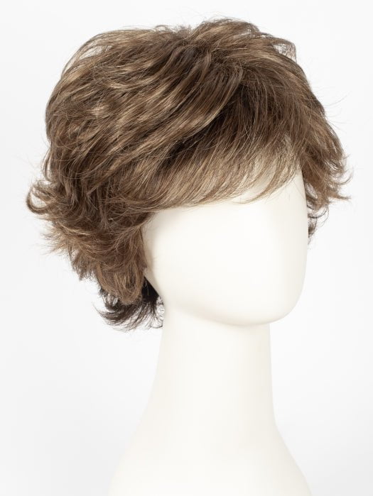 Resolve by Gabor is short style with timeless fluff that resurfaces with a contemporary touch. Soft layers in the front and side blend to an easy care brush-up back. Features include an inside hidden weft for a natural hairline. open ear tabs. and an open extended nape.