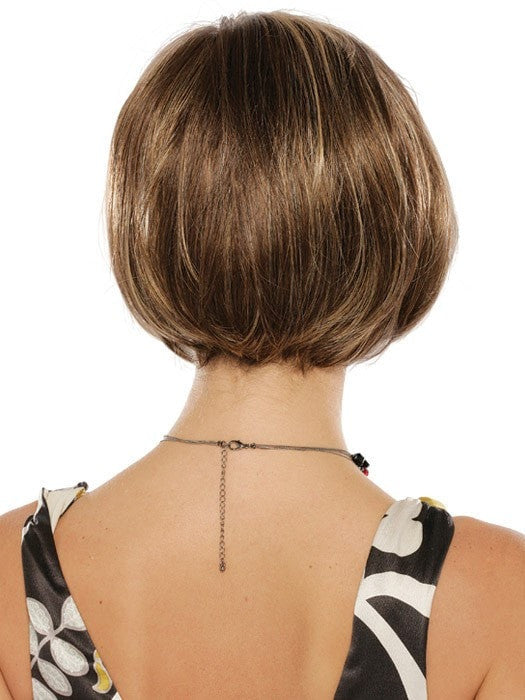 Sandra wig by Estetica Designs Wigs is a silky chin length page bob-cut wig. combined with layers and a bang. Sandra has a monofilament top that allows natural parting in any direction.