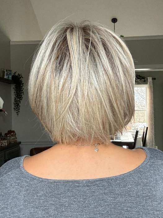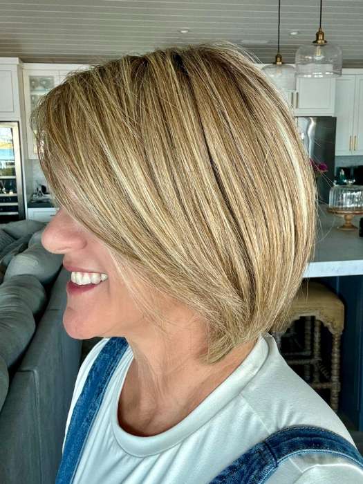 Straight Up with a Twist Elite by Raquel Welch is an edgy bob that features a 100% hand tied monofilament top for a more natural look and comfortable style. The extended lace front gives the illusion of hairs growing out of the scalp for a more realistic hairline. The Tru2Life Hair fiber is heat friendly synthetic hair for styling versatility.