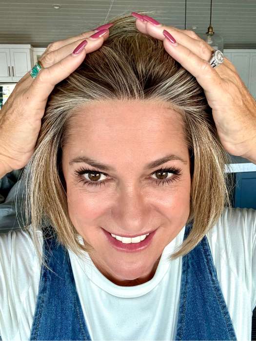 • Sheer Indulgence Monofilament Top – The base is machine-made. and the hair on the entire top of the wig is hand knotted one by one throughout the entire top for natural movement and parting flexibility.