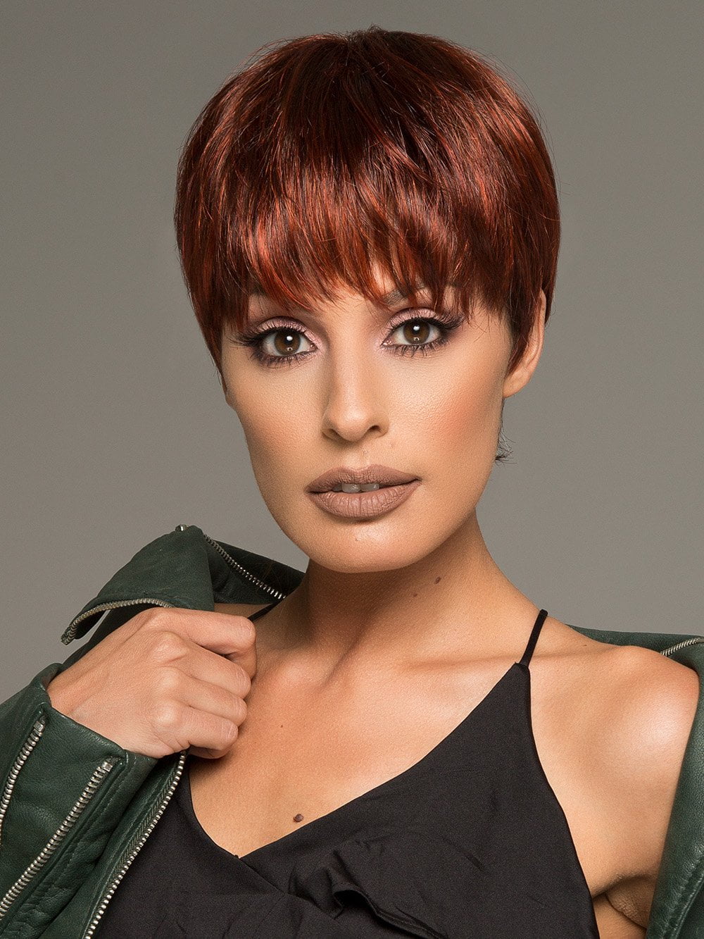 Swing by Ellen Wille is an edgy. short style that can be worn with volume or sleek and chic. The layers on the top and sides are longer and texturized to create a light. feathered look. Use a styling creme to amplify the layers! The nape is beautifully tapered to lay flat and ensure a secure and comfortable fit. Swing features an open wefted cap construction with a monofilament crown. for a more natural look. The Swing was created to celebrate Ellen’s 50 years of designing and is part of the Hair Power Collection!