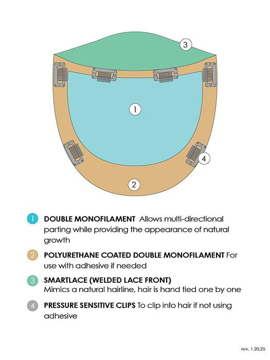 Top Form Lace HH 14 by Jon Renau is perfect mid-progressive hair loss. Crafted with 100% Remy human hair. this hair topper’s lightweight front gradually transitions to medium coverage at the crown and back. The temple-to-temple SmartLace lace front creates a realistic hairline. Great for adding subtle volume and movement!