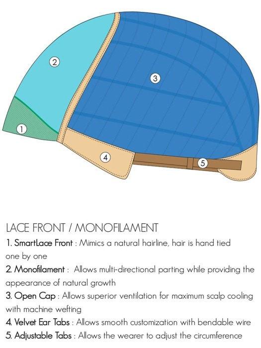 The ready-to-wear SmartLace™ front creates a natural-looking hairline and allows you to style the hair off the face. The hand-tied monofilament top provides multi-directional styling and looks extremely natural up close. A large cap will fit a circumference between 22.5-23.5. The high quality synthetic hair is pre-styled and will keep its shape in any weather. even after you wash it!