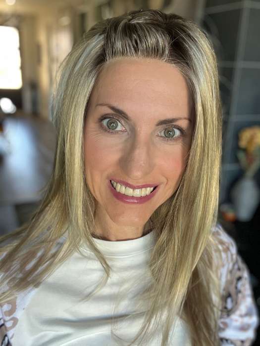 Aria from the Smartlace Collection by Jon Renau is a long on-trend style with layers that go past the shoulder. This silky. synthetic style has a natural looking hairline and a lightweight feel thanks to the SmartLace front and hand-tied. single monofilament top.