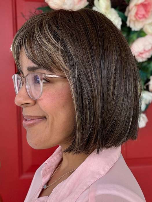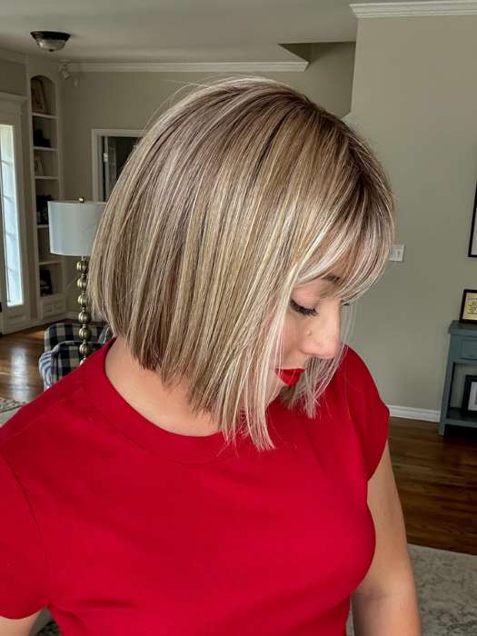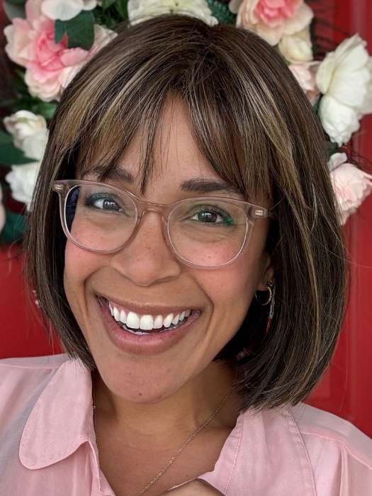 Cleo by Ellen Wille is part of their Hair Power Collection. This stylish bob wig stands out with its blunt cut bangs and uniform mid-length. The heat friendly synthetic fibers give you the option to wear the hair sleek or add waves and curls for more texture. Its basic cap construction has a monofilament crown for a more natural appearance.