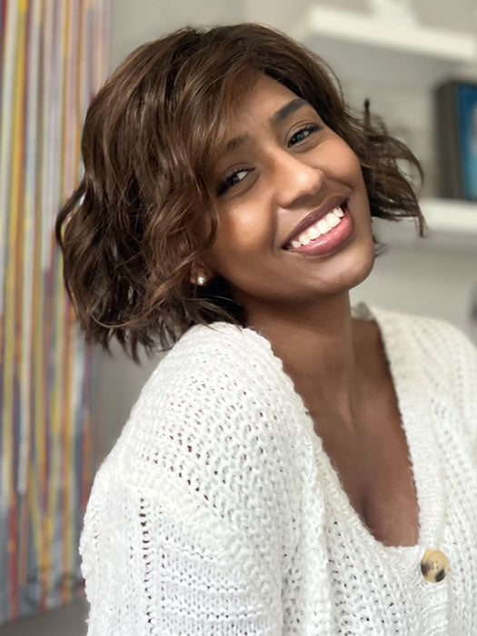 Step out in style with Dance from the Perucci Collection. This tousled synthetic style offers relaxed beach waves and a long side-swept fringe that is sure to freshen up any look! The cap on Dance features a monofilament part and an extended lace front hairline to give the illusion of the hair growing right from your scalp.