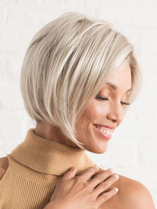 The Deena Wig by Estetica is a fun and flirtatious style. Deena is a Lace Front Wig and a short classic layered. angled bob and side swept bangs give you just the right amount of edge for a playful night out or a productive day at the office full of sophisticated beauty.