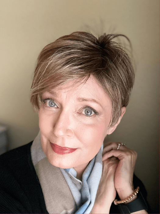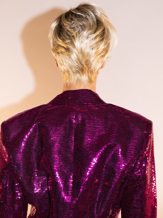 Disc by Ellen Wille is a short. asymmetrical boy cut with a soft. tapered neckline and angled fringe. This modern short wig features a monofilament left-side part. and is ideal for a petite to average head size. The density of the ready-to-wear synthetic hair looks more like natural hair and requires little to no customization or thinning. Disc is part of the Ellen Wille Hair Power collection.