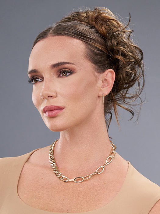 EasiWrap Medium by Jon Renau is a loose. messy bun extension from their easiTress collection. The synthetic hair has a wavy texture for a playful look. The elastic wrap allows you to easily attach the bun to your hair for a fun updo. Also available in and Lengths.
