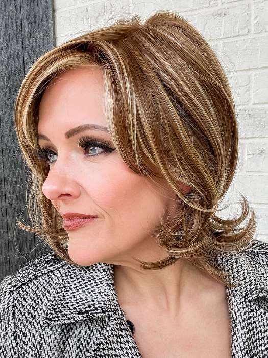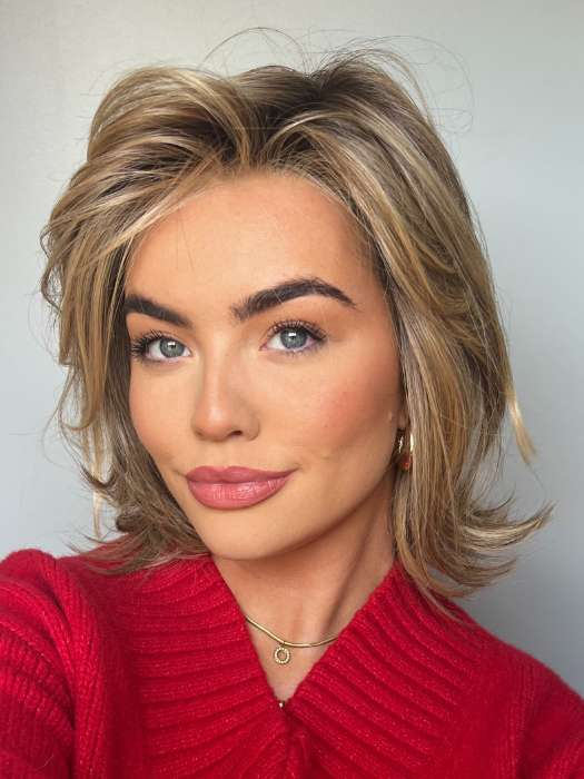 Elizabeth is a mid-length. layered. and versatile heat styleable synthetic wig. Wispy layers add a bohemian feel to this girly bob. The longer side bang gives a feminine and flattering look to any face shape. It is designed with all of the best wig features. including a 100% hand-tied cap. lace front. and monofilament top. Whatever style you choose. it will surely turn heads!