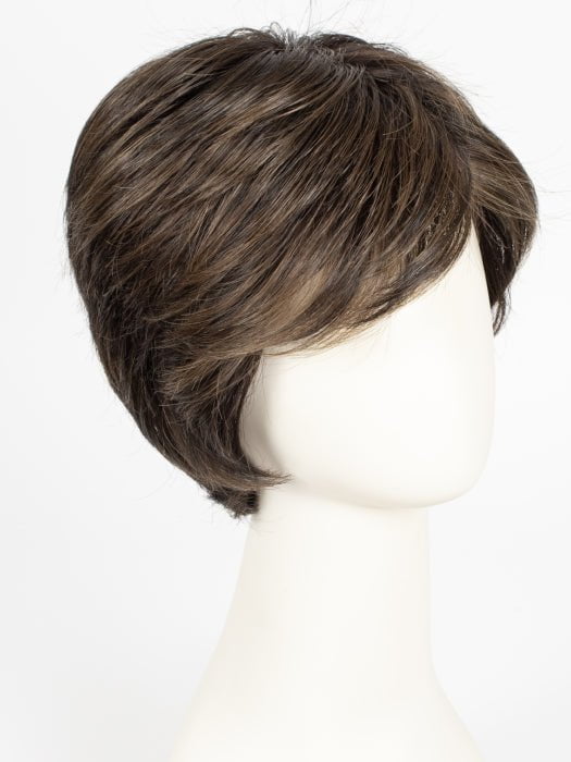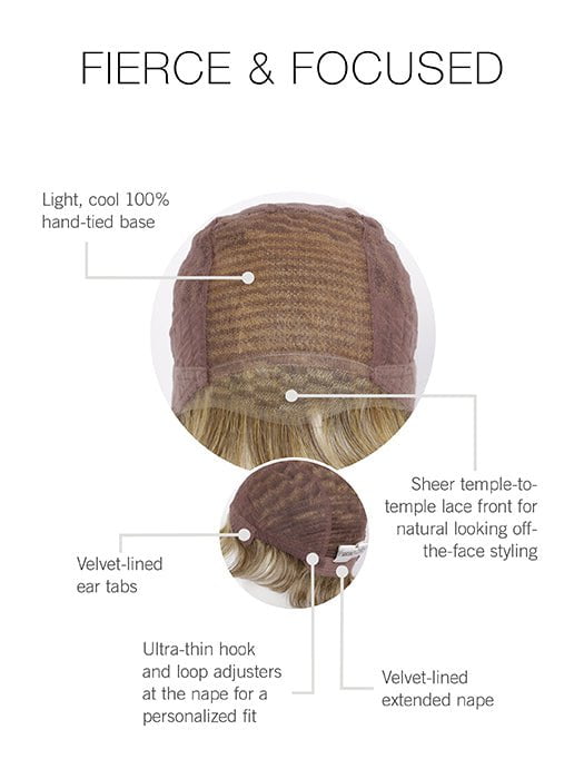 Fierce and Focused from the Signature Collection by Raquel Welch is a subtly waved short cut with a full crown. snug bangs and sides. with tapered lengths. This style exudes a chic vibe if styled piecy or a polished vibe if styled smoothly.