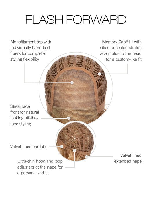 Flash Forward by Raquel Welch is from their Signature Collection. This mid-length wig has a monofilament top to give the illusion of hair growth. The choppy layers and razor-cut edges create a textured appearance. The Tru2Life heat friendly synthetic fiber allows you to smooth out the ends for a sleek style or flip out the edges for more texture.