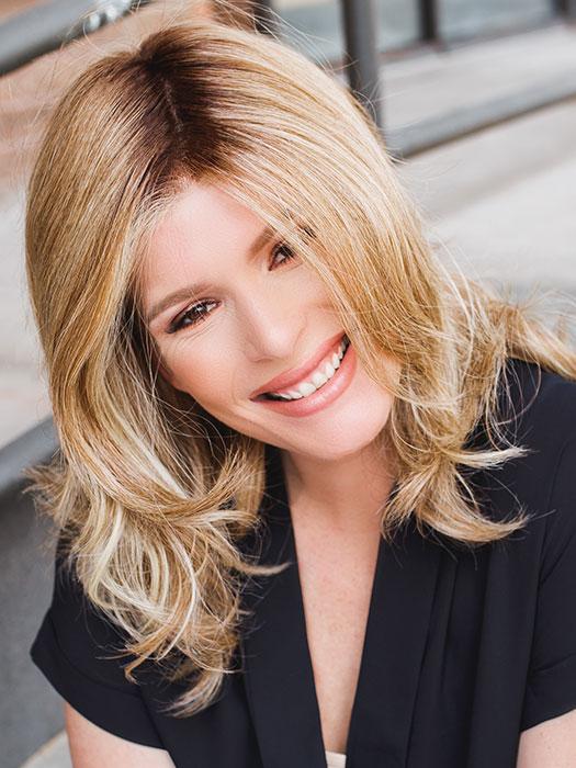The Free Time Wig by is the ultimate experience in a longer length. below-the-shoulder style is loaded with modern wave and movement. The Sheer Indulgence temple-to-temple allows for off-the-face styling and varied parting options and the 100% hand-knotted base affords complete styling freedom and an unbelievably light feel. The softly waved top and sides seamlessly blend into tighter barrel waves at the perimeter. making this knockout look both glamorous and easily wearable at the same time.