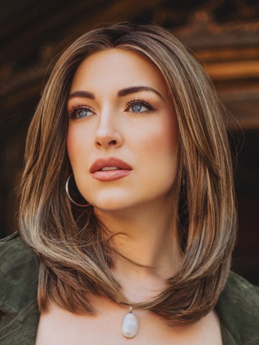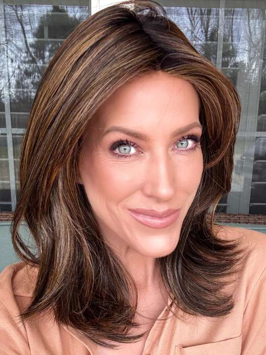 Full Finesse by Gabor presents a lovely length with long. tapered layers and curtain bangs that beautifully frame the face. Part of the Designer Series. the Tru2Life heat friendly synthetic fiber offers endless styling potential! The wide center monofilament part mimics natural hair growth for a realistic appearance. The extended lace front creates a realistic hairline for off-the-face hairstyling.