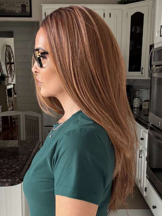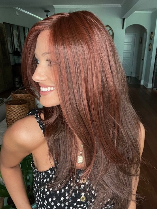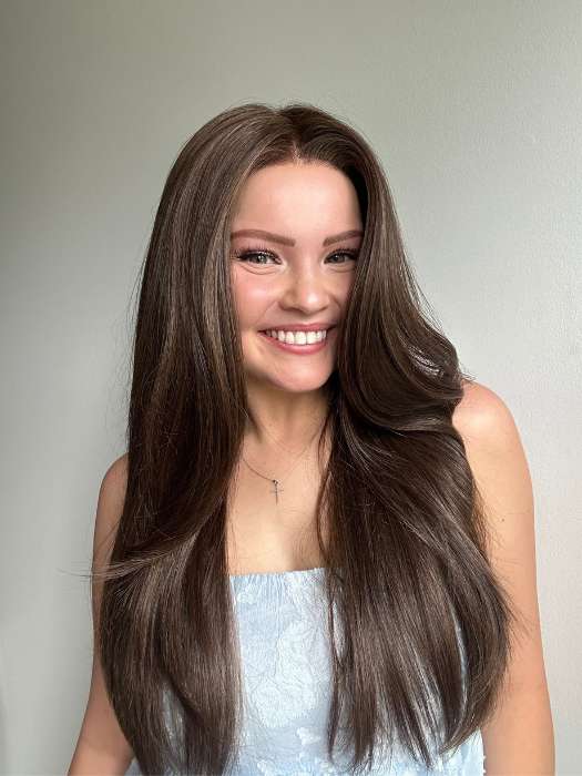 Glam by TressAllure is the ultimate long glamorous wig. This lightweight wig features airy layers cascading down to your mid back and frames your face. accentuating your features. This feathered style adds a soft and flattering touch. Crafted with low-density. Style-able Effortless™ heat-friendly synthetic fiber. Glam offers a natural part and an undetectable hairline. You can brush it off your face or create a stunning long ponytail. Perfect for those who desire silky soft long hair without the weight or bulk. Glam is versatile and can be styled with waves. curls. or straightened. ensuring you always look glamorous.