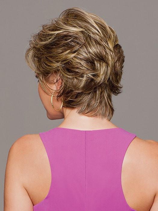 The Gratitude Wig is from the Gabor Essentials Collection and features a layered cut with added volume at the crown and a side bang. The heat-friendly fiber comes perfectly styled out of the box but can be touched up using hot tools. It’s a short style that’s feminine yet comfortable. For more personalization. have your stylist trim the eyelash bang.