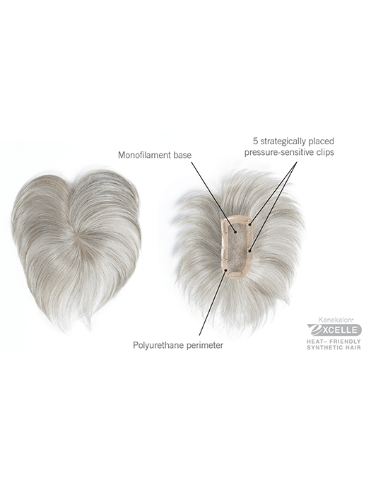 The narrow. hand-tied base of IN FULL EFFECT by HIM is the perfect men’s accessory to help fill in or conceal areas of sparseness at the top of the head. Five pressure sensitive clips allow for placement anywhere a little fill or fullness is desired. This versatile piece is a Hollywood trick of the trade and can be worn as it is with longer hair lengths or trimmed down to blend seamlessly into shorter styles as well. The monofilament construction of IN FULL EFFECT allows for brushing and combing in any direction.