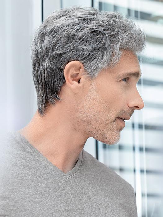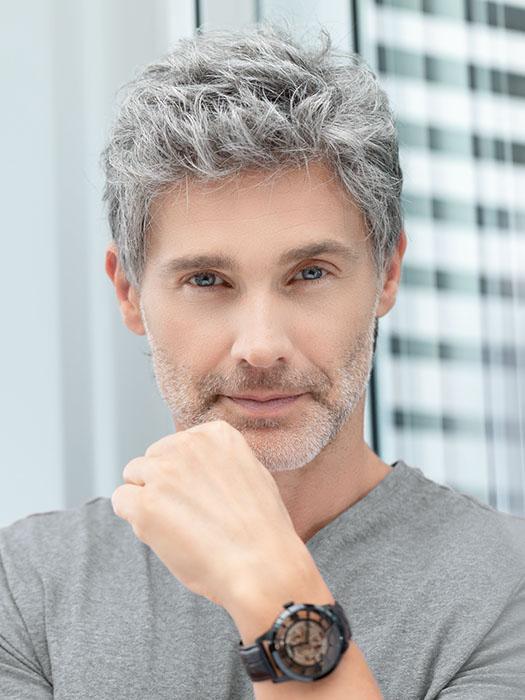 Justin by Ellen Wille has an extended lace front and silicone ear tabs and nape to keep this synthetic style both natural-looking and secure. The double monofilament is luxuriously soft. making this style so comfortable to wear. Plus. the wefted sides and back allow for air ventilation to keep you cool all day.