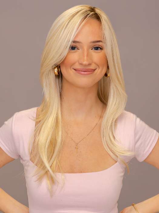 Locklan by Estetica has effortless layers throughout this synthetic cut. This long wig has a monofilament top and lace front. balancing the beauty. comfort. and natural look that Locklan offers.