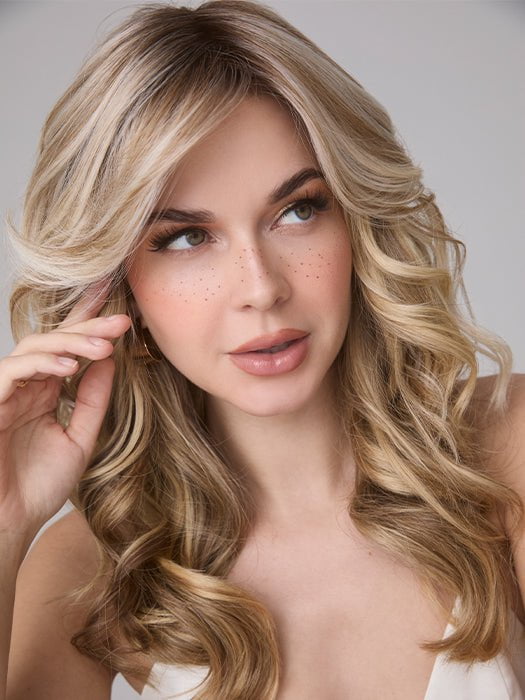 Medium Wavy TP Mono by Amore is a mid-length hair topper with beautiful waves that add the perfect amount of texture. The tapered fringe can be styled in multiple ways from trendy curtain bangs to stunning side-swept bangs. The monofilament top gives you the option to change the part. The lightweight monofilament base has soft netting for a comfortable fit and natural appearance. The lace front gives the illusion of hair growth for a natural hairline.