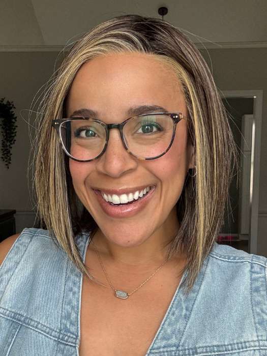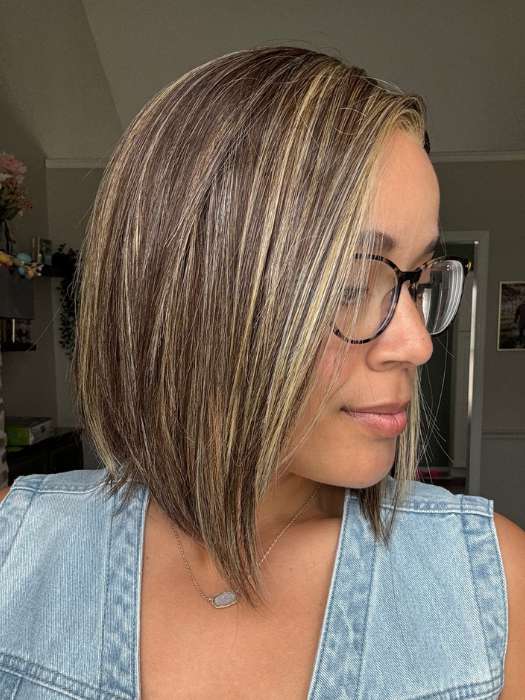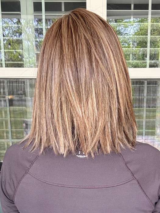 Nina by BelleTress is a stylish medium bob wig from the Lux SE Collection. The heat friendly synthetic hair rests above the collarbone for a polished mid length hairdo. The 100% hand tied cap has velcro adjusters for a comfortable fit. The full monofilament top and ear-to-ear lace front create a realistic appearance.