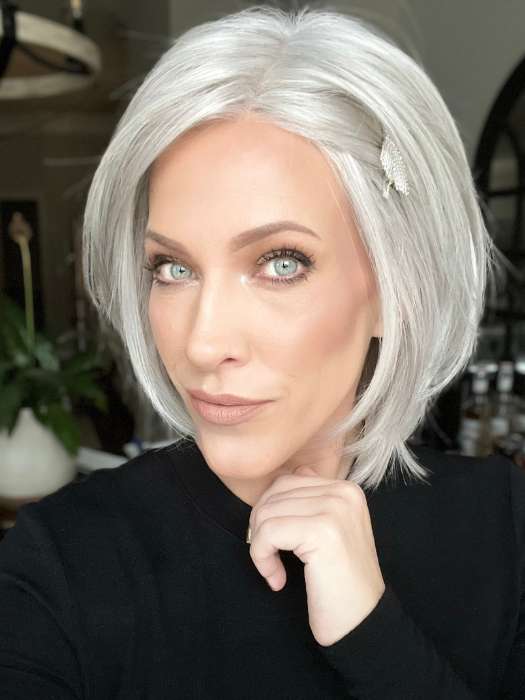 BEST SELLER | Play it Straight by Raquel Welch is a short. straight. and layered bob cut synthetic wig. The sheer lace front creates the look of your own hairline. giving you the most natural appearance. The is hand-tied and sheer mimicking natural hair growth and blending in with all skin tones. Play It Straight is chic and classic yet fashion-forward. This short wig is cut. styled. and ready-to-wear. To personalize. trim the bang and wear it behind the ear. Play It Straight is also available in gray colors. beautiful shades of grey!