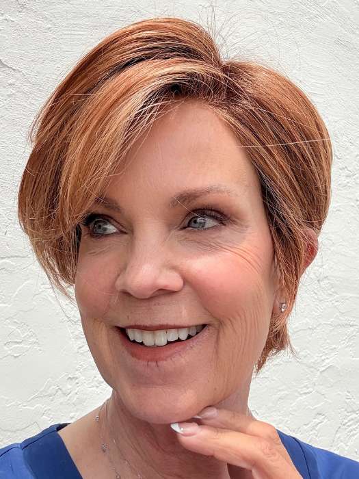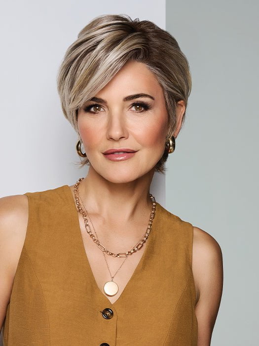 Posh Premiere by Raquel Welch lets you have your very own movie star moment. This short wig has a layered boycut with face-framing bangs and tapered sides for a polished look. The volume at the crown creates a fuller appearance. The synthetic hair is crafted with HairUWear’s exclusive new FeatherLite fiber. which boasts a hollow core and weighs less than human hair. The lightweight fibers can be heat-styled and retain their shape.